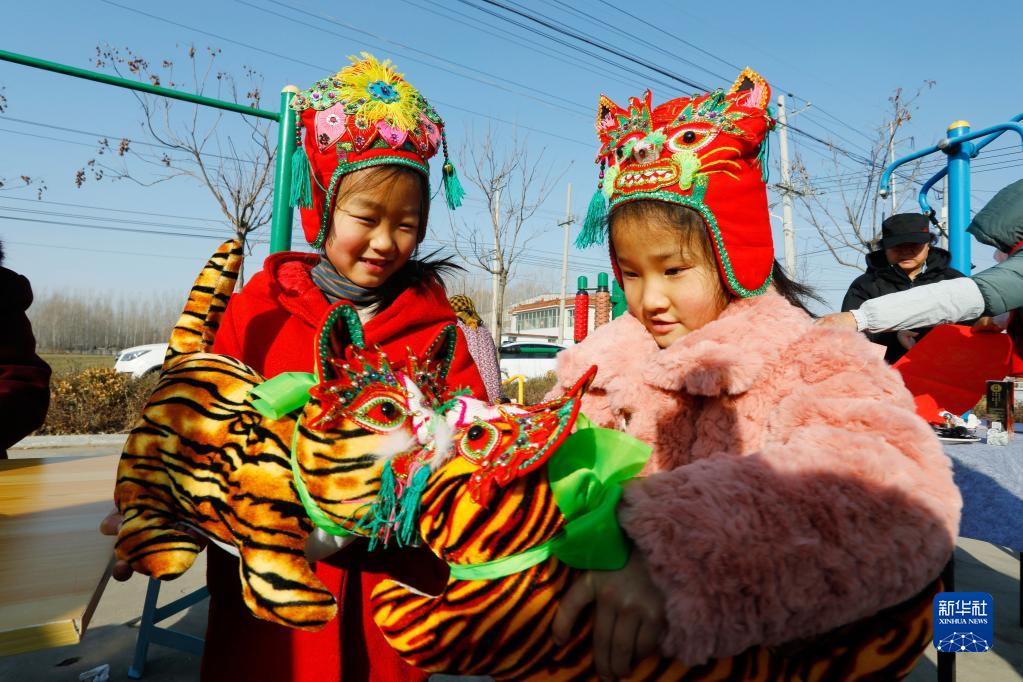 1月10號,在羊流鎮(zhèn)大洼村,小朋友對“布老虎”愛不釋手。
