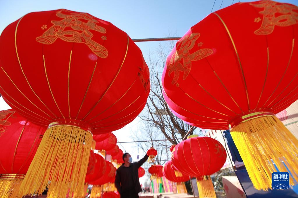 1月10日,在山東省臨沂市平邑縣地方鎮(zhèn),人們在年貨大集上選購大紅燈籠。