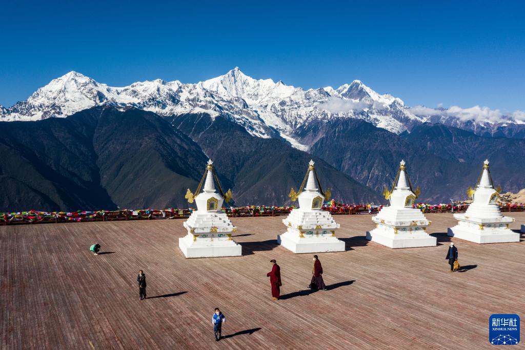 1月11日拍攝的梅里雪山一景(無(wú)人機(jī)照片)。