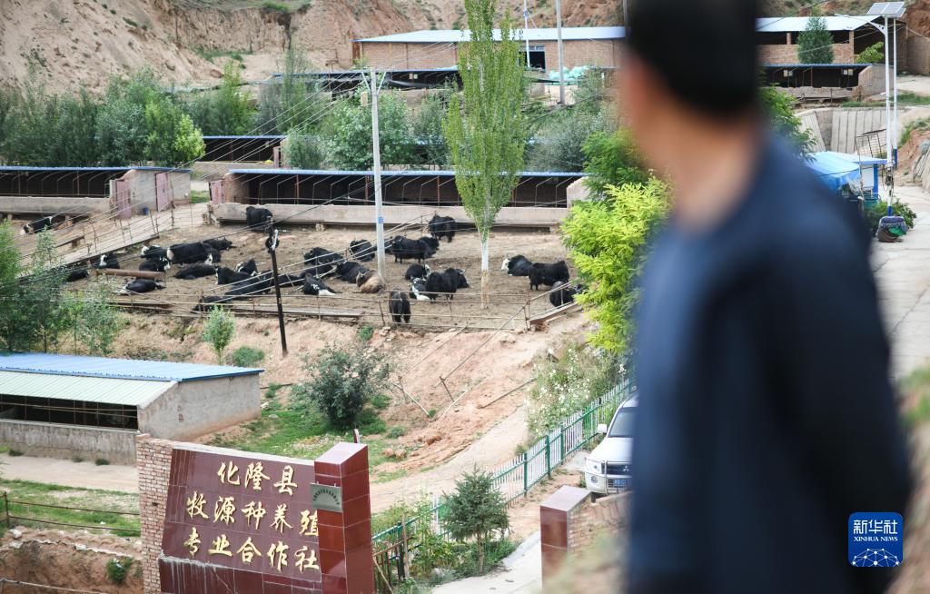 孫海云在查看自家牛圈(2021年7月15日攝)。