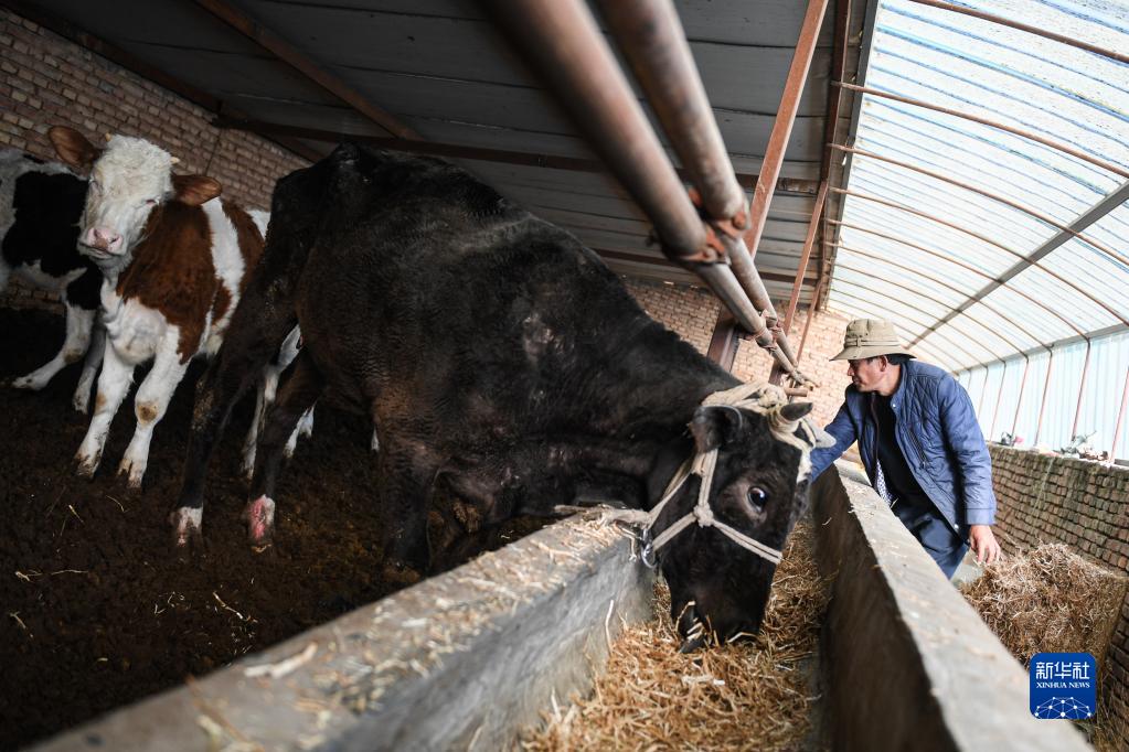 1月9日,孫海云在牛圈內(nèi)給牛添加飼料。