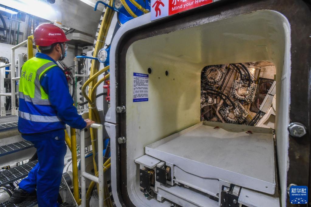 1月11日,技術人員在“大道先鋒號”盾構機始發(fā)前檢查刀頭狀態(tài)。