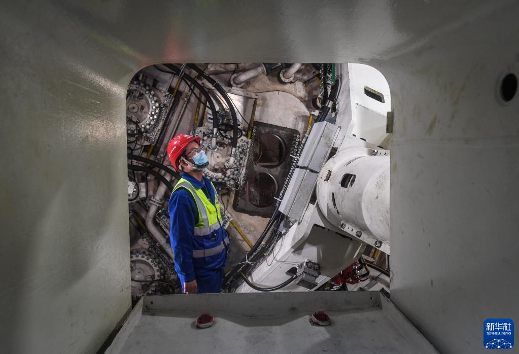 1月11日,技術人員在“大道先鋒號”盾構機始發前檢查刀頭狀態。