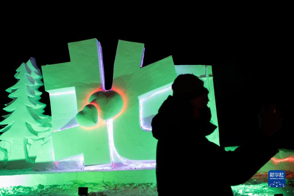 1月7日,游客在黑龍江省漠河市北極村冰雪童話世界內(nèi)游玩。