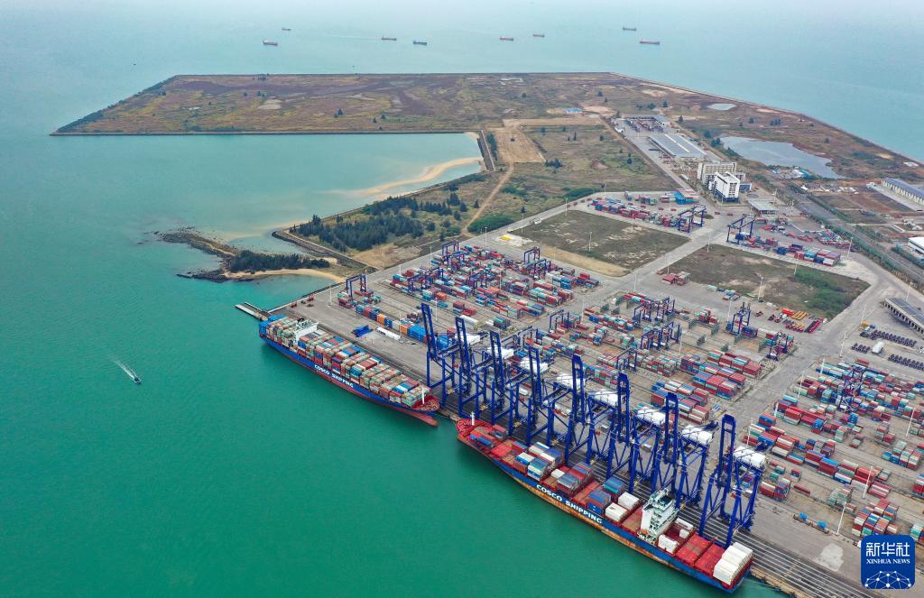 這是1月11日拍攝的海南洋浦區域國際集裝箱樞紐港擴建工程所在地(無人機照片)。