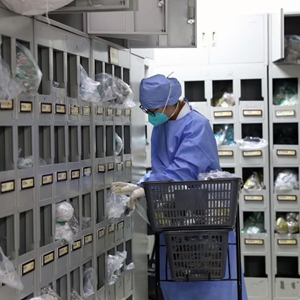 1月10日,中藥師在青浦區中醫醫院藥房工作。