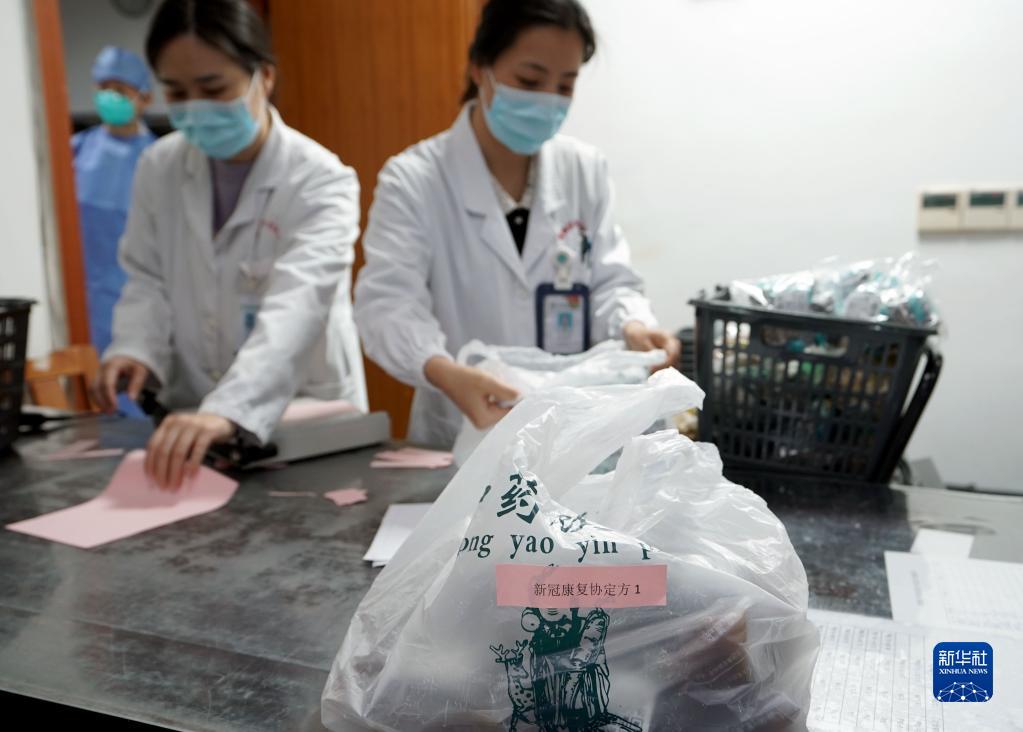 1月10日,在青浦區(qū)中醫(yī)醫(yī)院藥房,中藥師打包藥品。