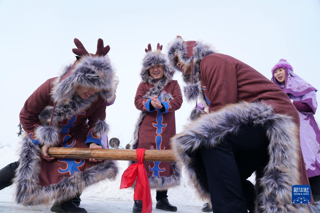 赫哲族是我國人口較少民族之一,世居黑龍江、烏蘇里江、松花江流域,因地處祖國東方,被稱為“守望太陽的民族”。春節臨近,在赫哲族聚居區之一黑龍江省撫遠市,一些赫哲族群眾開展冰湖冬捕、雪地“頂杠”、“魚王角力”等活動,展現赫哲族的傳統民俗。