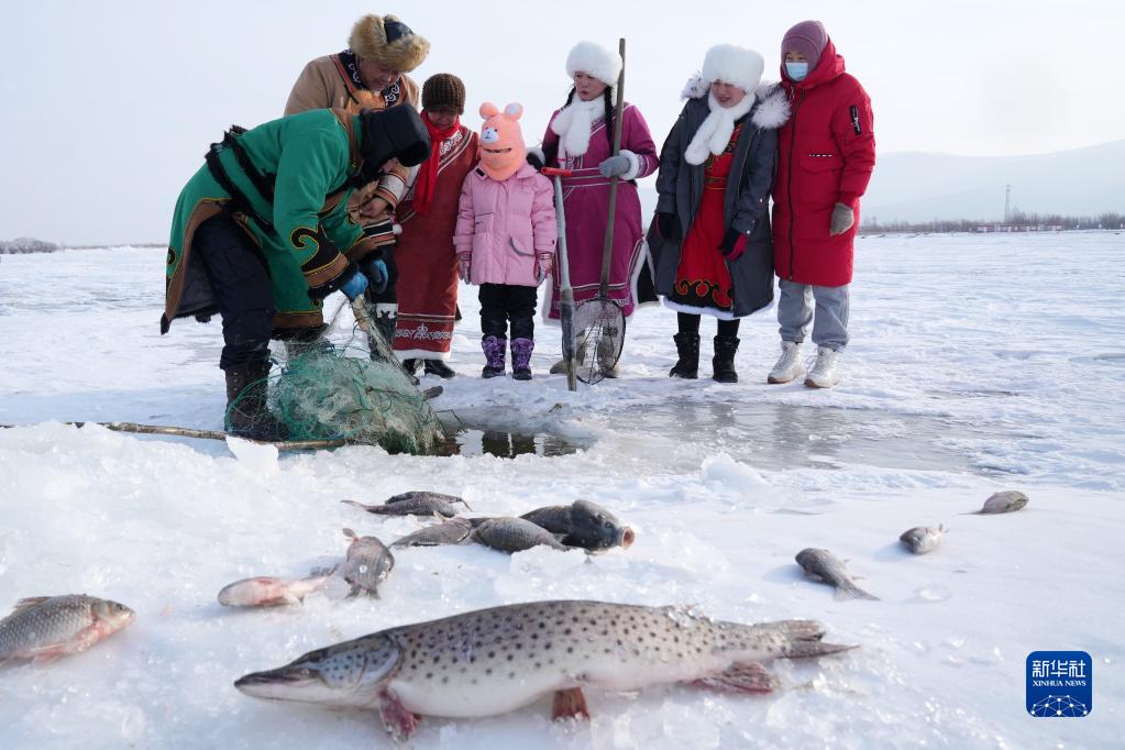 赫哲族是我國人口較少民族之一,世居黑龍江、烏蘇里江、松花江流域,因地處祖國東方,被稱為“守望太陽的民族”。春節臨近,在赫哲族聚居區之一黑龍江省撫遠市,一些赫哲族群眾開展冰湖冬捕、雪地“頂杠”、“魚王角力”等活動,展現赫哲族的傳統民俗。