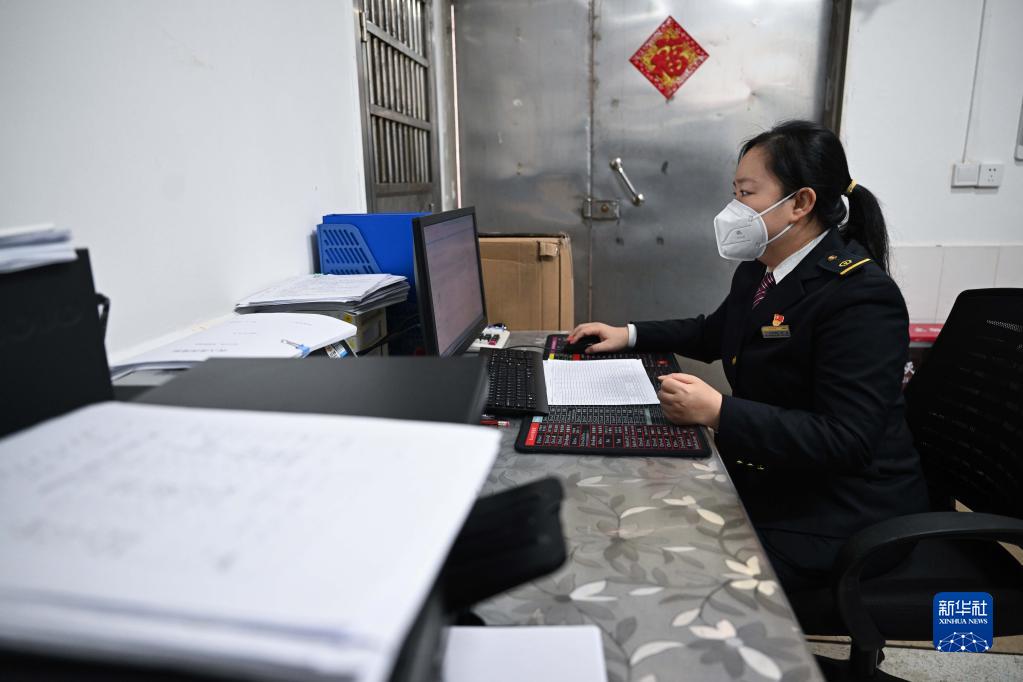 在??诘幕浐hF路輪渡南港碼頭售票處,伍琳處理當日工作(1月9日攝)。