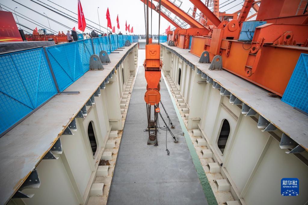 1月12日,李家沱長江復線橋進行最后一節鋼箱梁吊裝作業。