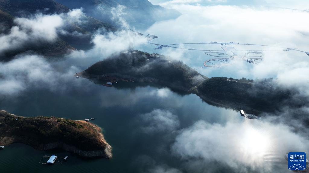 冬日,貴州省羅甸縣紅水河畔山巒起伏,云纏霧繞,景色如畫。
