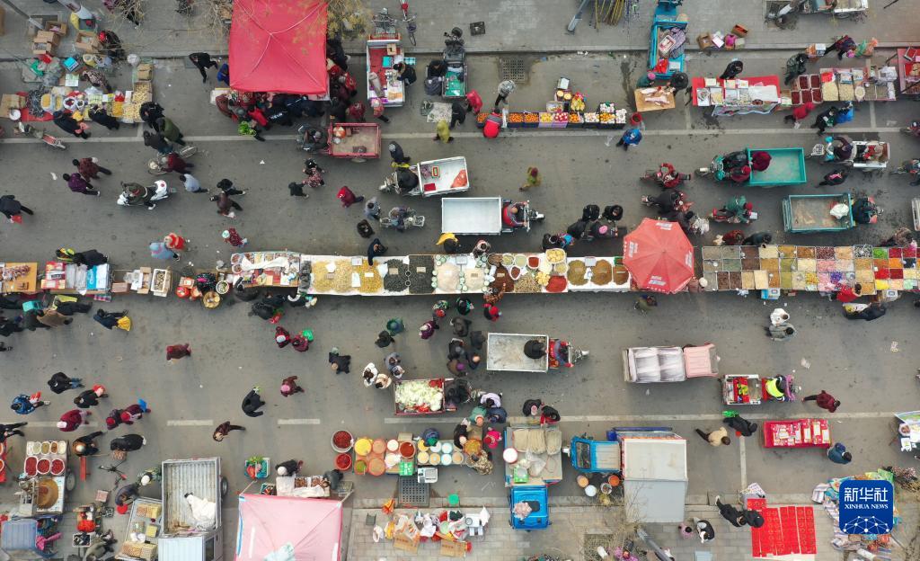 1月12日,人們在金井鄉的年集上采購商品(無人機照片)。