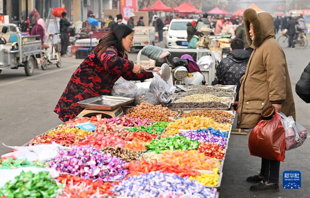 春節臨近,年味漸濃。在山西省運城市鹽湖區金井鄉的年集上,不少周邊地區的村民前來采辦年貨,迎接新春的到來。