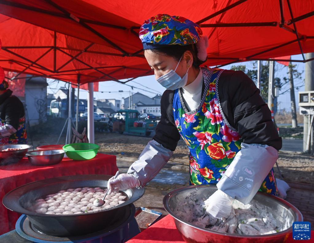 當日,浙江省湖州市吳興區(qū)東林鎮(zhèn)的水鄉(xiāng)“魚湯飯 品豐年”迎春活動在泉慶村舉辦,活動包括清塘捕魚,魚湯飯、魚圓魚餅、刺毛圓子、手作年糕等年味美食的制作及品嘗,還有歌舞表演、非遺柳編現(xiàn)場展示、書法愛好者寫春聯(lián)送祝福等。