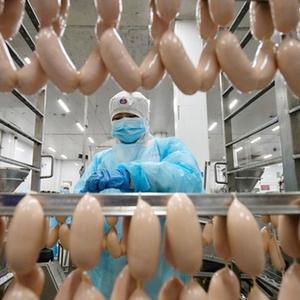 1月12日,工人在玉田縣一家火腿腸企業的生產車間工作。