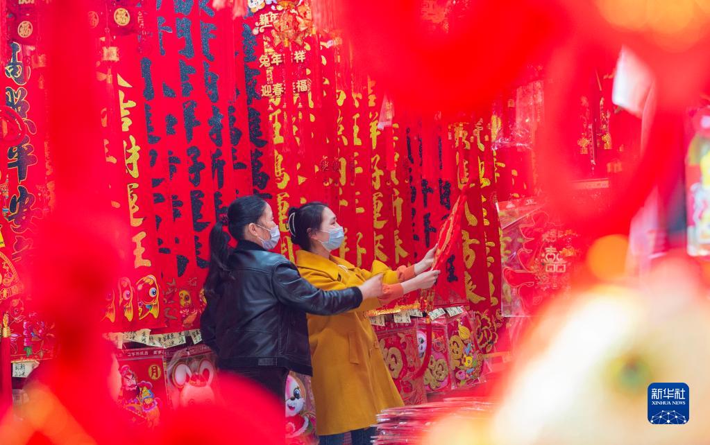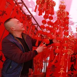 臨近春節,各地年貨市場熱熱鬧鬧,人們忙著選購新春飾品。