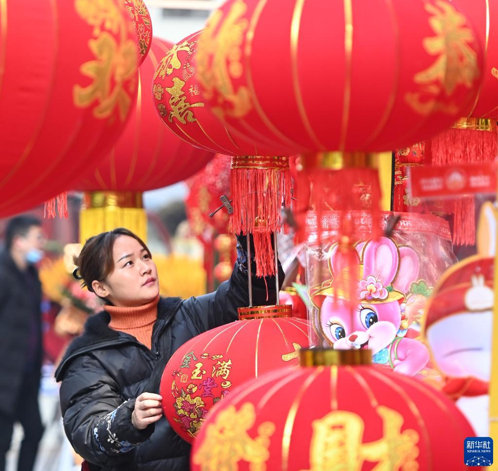 臨近春節,各地年貨市場熱熱鬧鬧,人們忙著選購新春飾品。