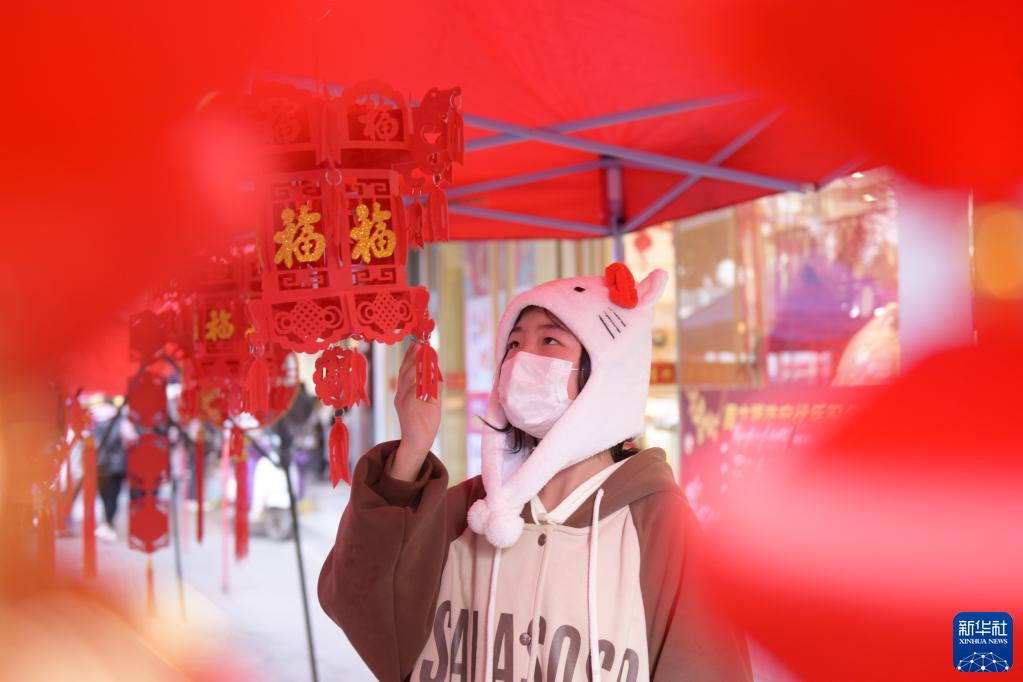 臨近春節(jié),各地年貨市場熱熱鬧鬧,人們忙著選購新春飾品。
