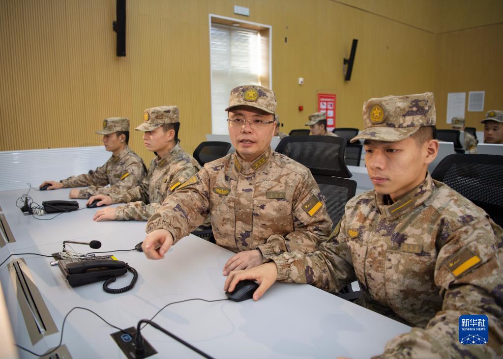 火箭軍某部處長丁國林帶領導調骨干一起研究籌劃部隊對抗訓練(資料照片)。