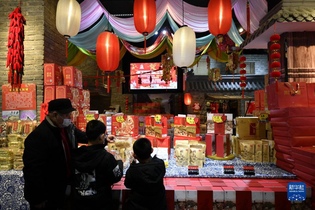 1月12日,顧客在河北省唐山市豐潤區2023“非遺”年貨節上選購商品。