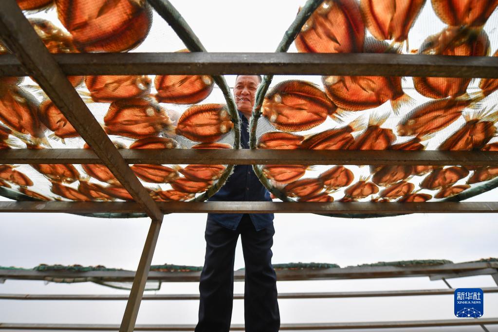 春節臨近,在湖南省岳陽市君山區錢糧湖鎮六門閘社區,當地上岸漁民將魚進行切割、晾曬、加工成魚干,準備供應節日市場。“六門閘風干魚”是國家地理標志產品,部分漁民上岸后,從外湖捕魚轉為水產養殖,并將養殖魚進行風干售賣。為了幫助上岸漁民把風干魚推得更遠、銷得更多,君山區實施“百村千人”直播帶貨人才培養計劃,助推上岸漁民創業增收,助力鄉村振興。