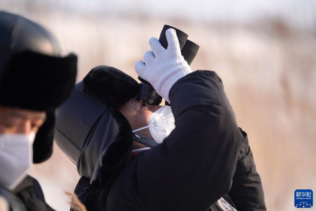 1月12日,國(guó)網(wǎng)撫遠(yuǎn)市供電分公司抓吉供電所所長(zhǎng)白樺先(右)和工友費(fèi)義偉在巡視東極線。