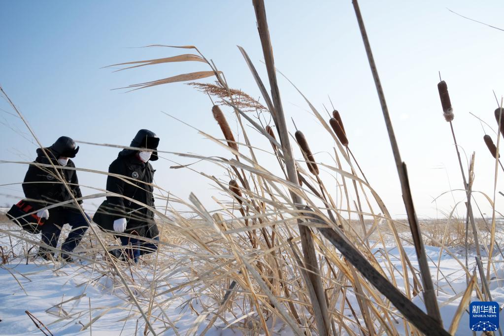 1月12日,國網撫遠市供電分公司抓吉供電所所長白樺先(右)和工友費義偉在巡視東極線。
