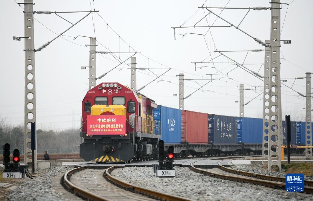 1月13日上午,滿載來(lái)自哈薩克斯坦1300噸面粉的中歐班列駛?cè)胛靼矅?guó)際港站貨場(chǎng),標(biāo)志著2023年首趟中歐班列年貨物資返程專列順利抵達(dá)西安,為即將到來(lái)的春節(jié)拉來(lái)了“洋年貨”。