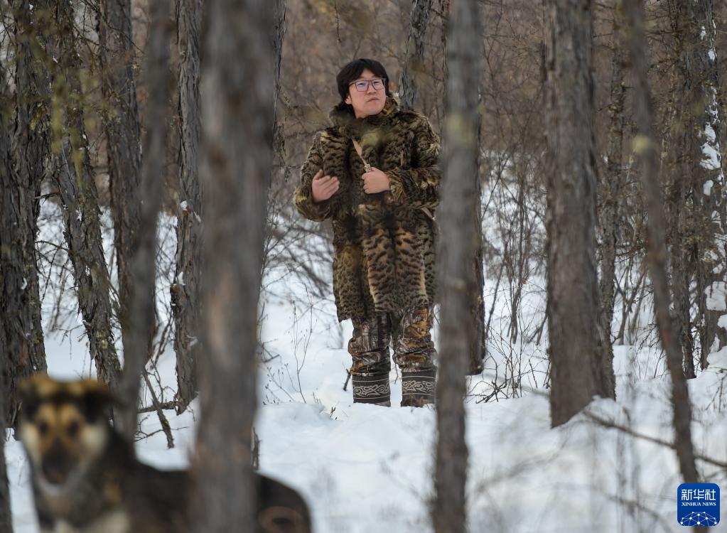 1月12日,覺樂在林區深處踩著厚厚的積雪去尋找自己的鹿群。新華社記者 彭源 攝