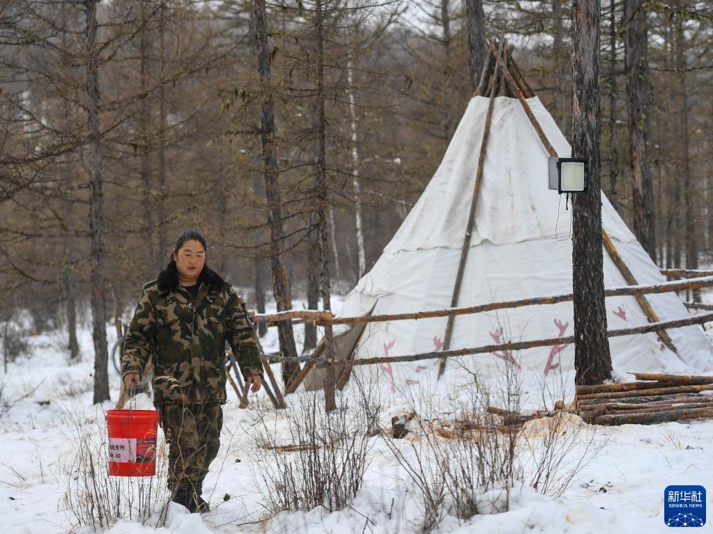 1月12日,覺樂的表弟達(dá)林瑪準(zhǔn)備去喂生病的馴鹿。新華社記者 彭源 攝