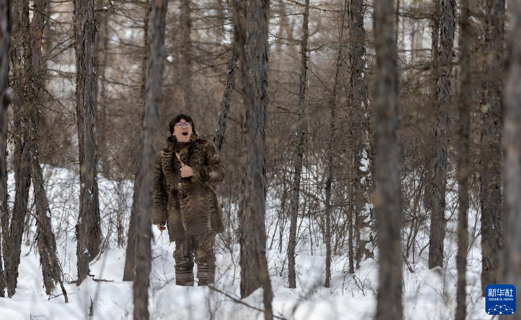 1月12日,覺樂在山林中呼喚自己的鹿群。新華社記者 費茂華 攝