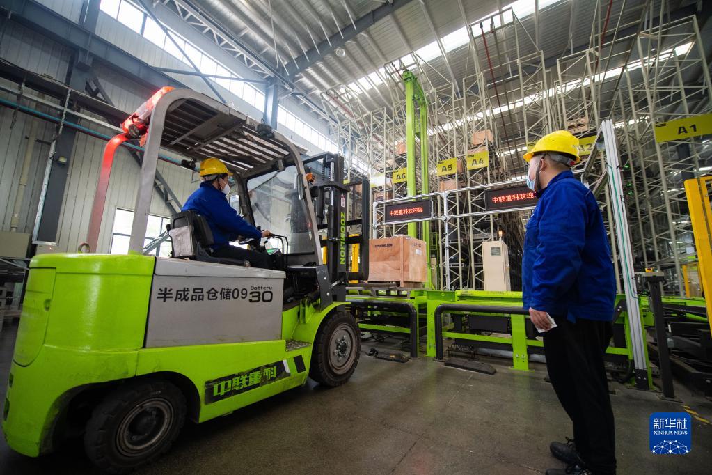 1月13日,在位于常德高新區的中聯重科建筑起重機械有限責任公司生產車間,工作人員把生產的產品零部件入庫。
