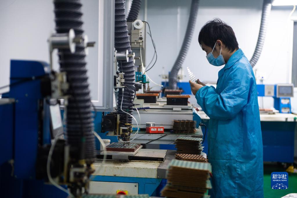 1月13日,在位于常德高新區(qū)的常德市捷芯微電子科技有限公司生產(chǎn)車間,工作人員在檢查電路板質(zhì)量。