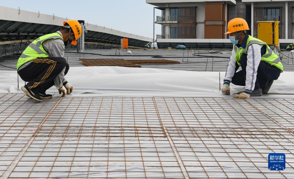 工人在博鰲零碳示范區項目現場施工(1月12日攝)。