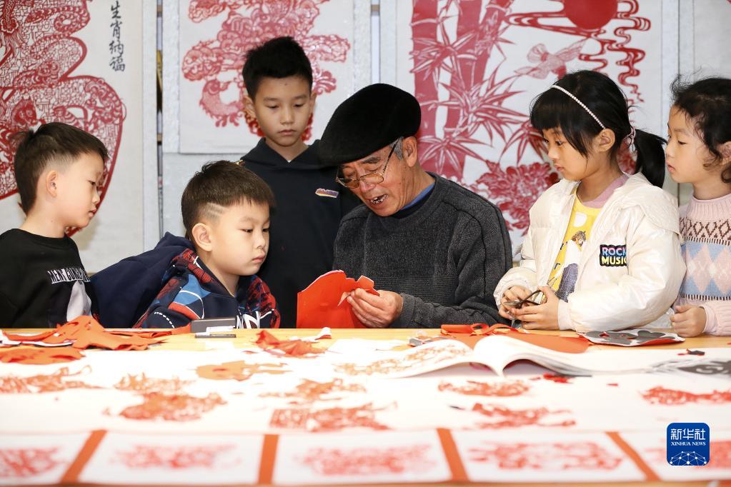 當(dāng)日,“手藝迎新春 年味有傳承”主題創(chuàng)作體驗(yàn)活動(dòng)在山東省青島市即墨區(qū)新時(shí)代文明實(shí)踐中心舉行,來(lái)自當(dāng)?shù)氐募艏垺⒘帯⒗赢嫷葌鹘y(tǒng)技藝手藝人與孩子們共同了解春節(jié)習(xí)俗,學(xué)習(xí)手工技藝,喜迎新春到來(lái)。新華社發(fā)(梁孝鵬 攝)