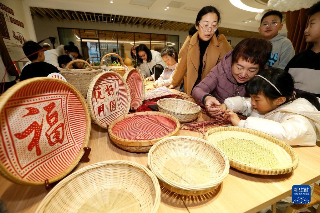 當(dāng)日,“手藝迎新春 年味有傳承”主題創(chuàng)作體驗(yàn)活動(dòng)在山東省青島市即墨區(qū)新時(shí)代文明實(shí)踐中心舉行,來自當(dāng)?shù)氐募艏?、柳編、烙畫等傳統(tǒng)技藝手藝人與孩子們共同了解春節(jié)習(xí)俗,學(xué)習(xí)手工技藝,喜迎新春到來。新華社發(fā)(梁孝鵬 攝)