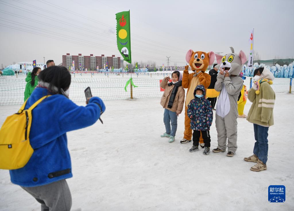 春節臨近,許多游客來到河北省唐山市豐潤區西那母莊三村舉辦的冰雪嘉年華,盡情享受冬季戶外冰雪游藝的樂趣。新華社記者 牟宇 攝