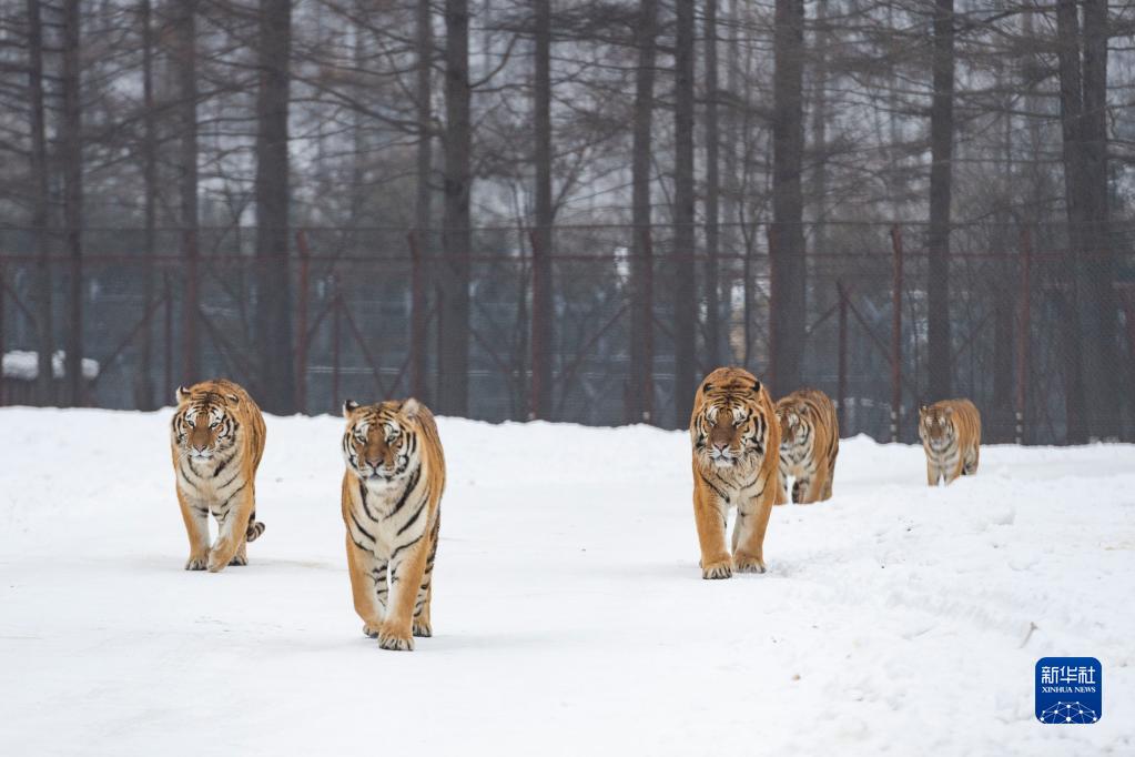 冬季里,黑龍江省海林市橫道河子?xùn)|北虎林園的東北虎生活得悠閑自在。新華社記者 謝劍飛 攝