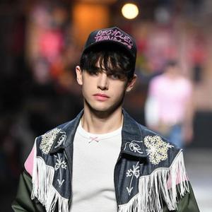 1月13日,模特在意大利米蘭男裝周上展示Dsquared2品牌時裝。