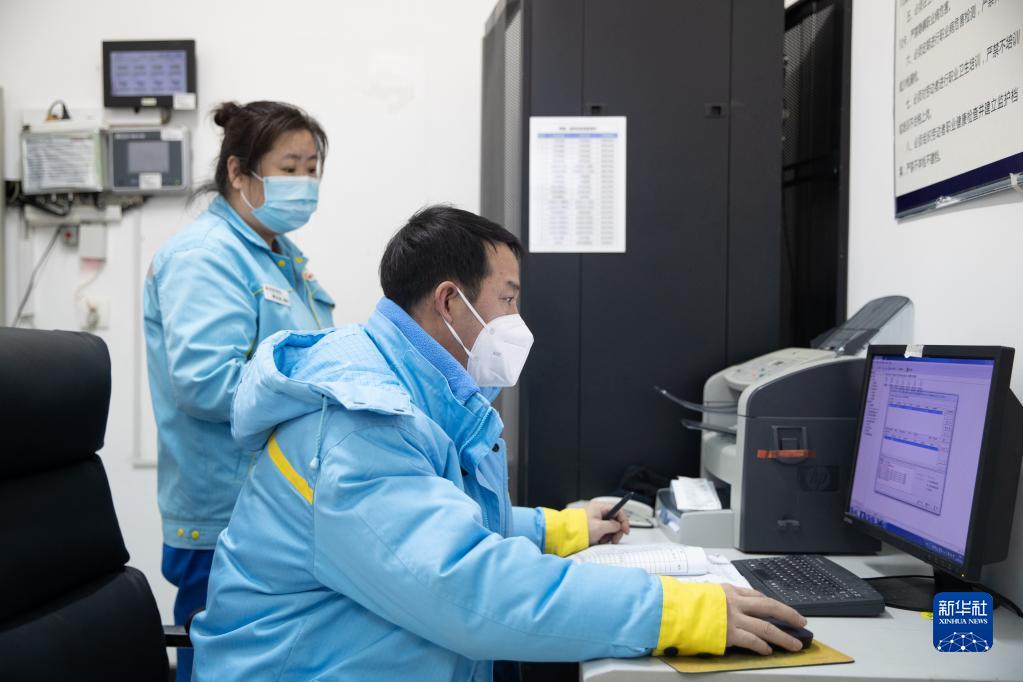 1月12日,在北極村加油站內,工作人員林德彬(右)和吳金鳳在核對信息。