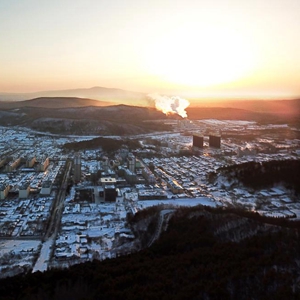 1月14日,晨光照耀著黑龍江省撫遠(yuǎn)市城區(qū)(無人機(jī)照片)。