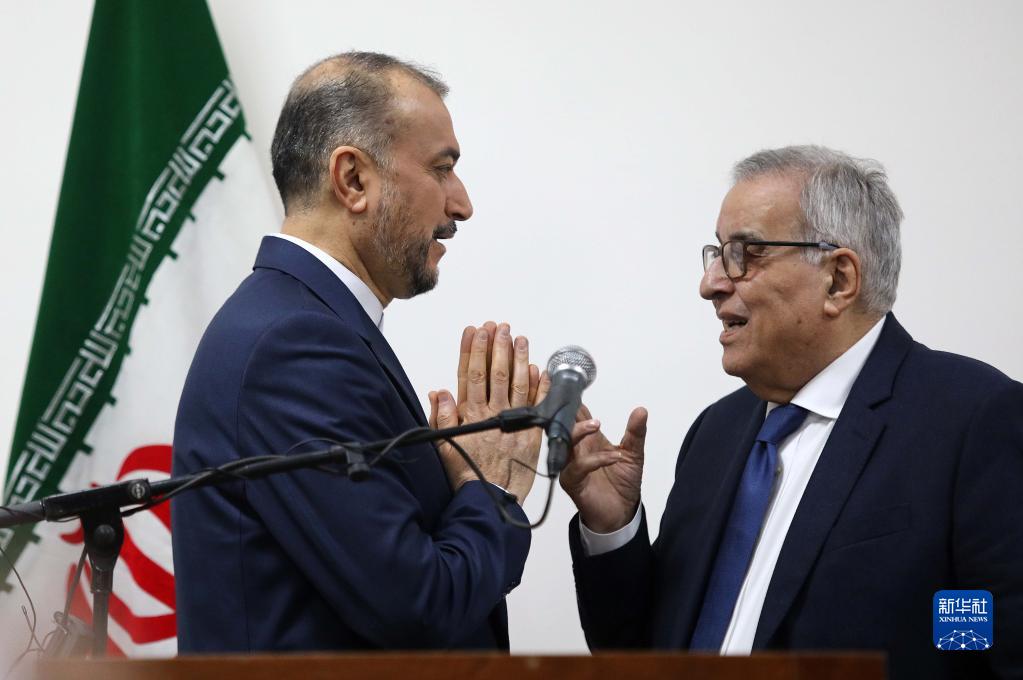 1月13日,在黎巴嫩貝魯特,黎巴嫩外長哈比卜(右)和伊朗外長阿卜杜拉希揚共同出席新聞發布會。