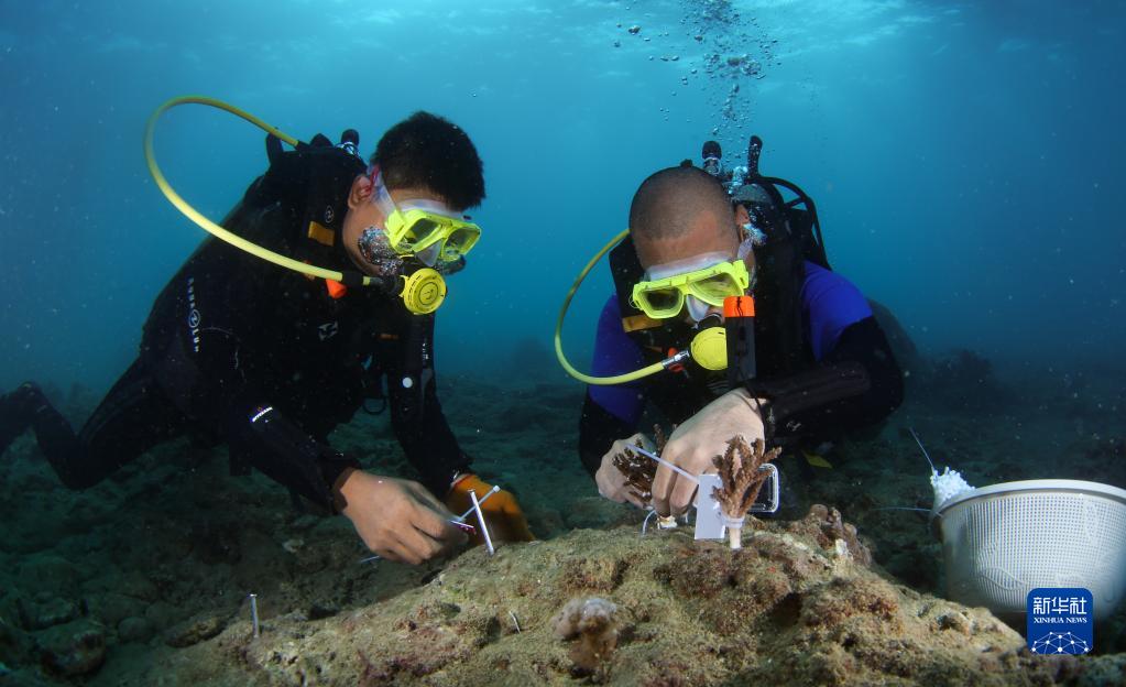 在海南省三亞市亞龍灣相關海域,由海南三亞珊瑚礁國家級自然保護區組織,并由三亞珊瑚礁生態研究所負責實施的珊瑚礁生態修復項目近期完成修復工作。據了解,該項目采用投放人工生態礁及移植珊瑚種苗的方式完成生態修復,預期珊瑚種苗半年存活率80%以上、一年存活率達70%以上。