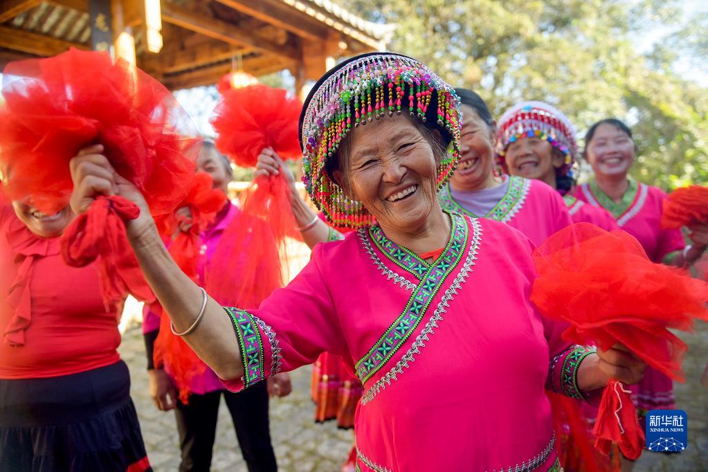 1月13日,云南省大理南澗彝族自治縣碧溪鄉巖子頭村村民在排練“村晚”節目。