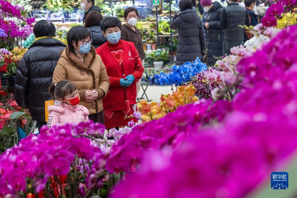 1月14日,河北省唐山市豐南區市民在花卉市場選購鮮花。
