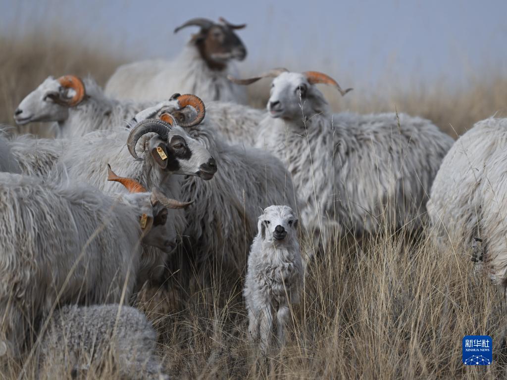1月13日,在青海湖湖東種羊場,羊群在草原上活動。