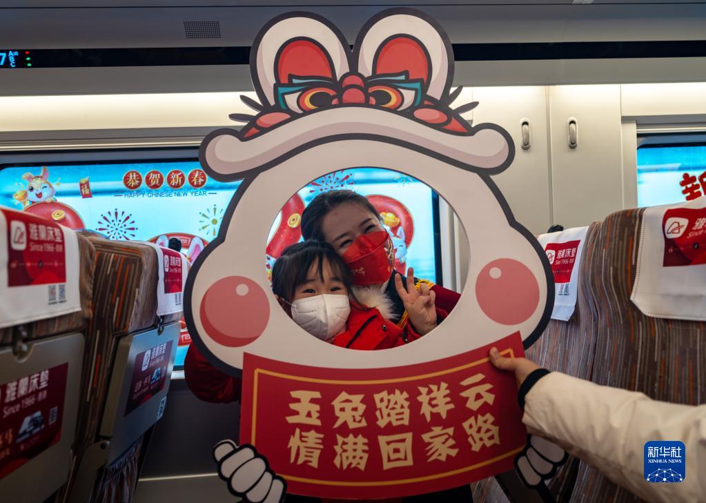 1月13日,在丹東開往上海虹橋的G1230次列車上,列車乘務人員為旅客準備了一場熱鬧的高鐵聯歡會,在歡歌笑語中迎接農歷小年。