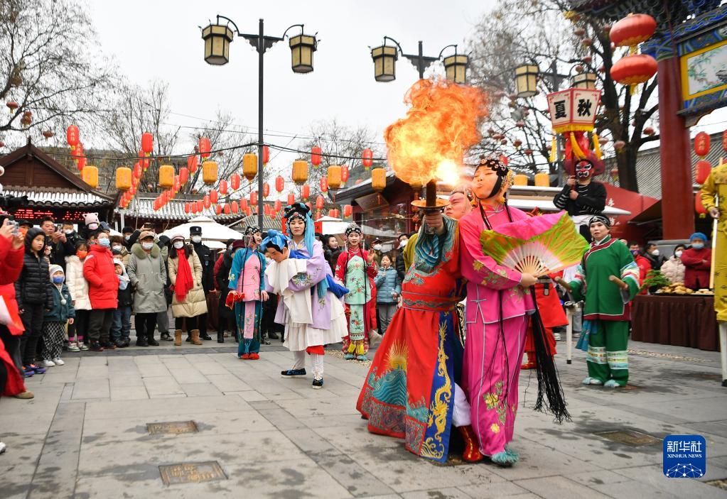 1月14日,演員在西安市永興坊景區(qū)表演傳統(tǒng)社火。