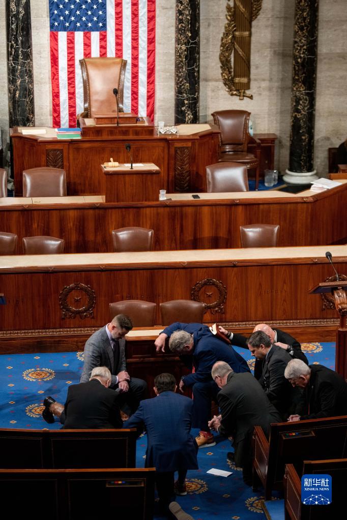 1月6日,在美國華盛頓國會,一些議員在眾議院議長選舉表決前祈禱。